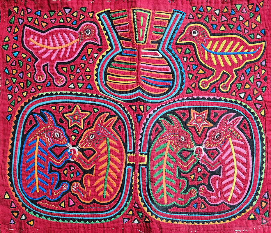 Panama Woman in Boat Showing Mola